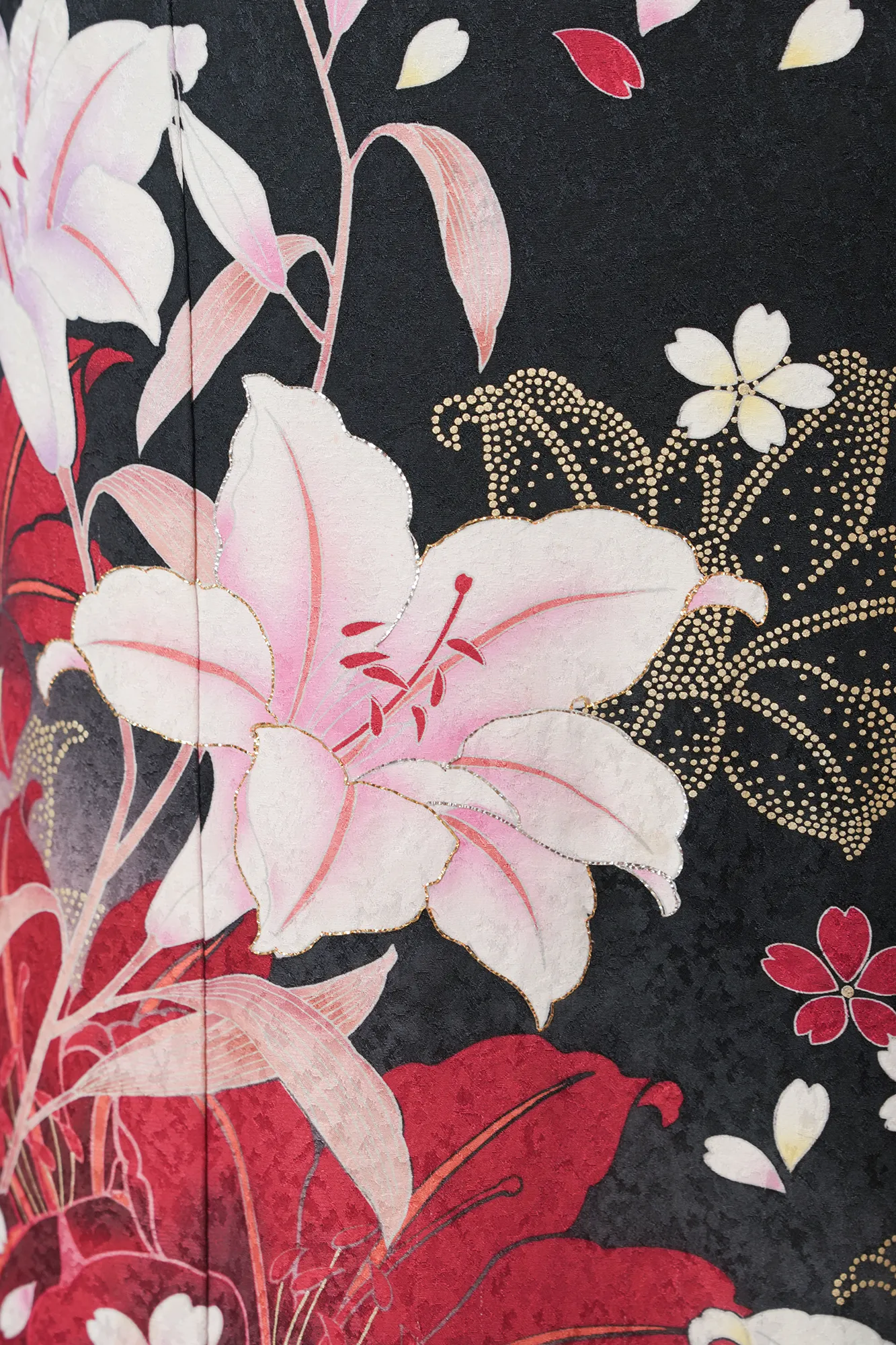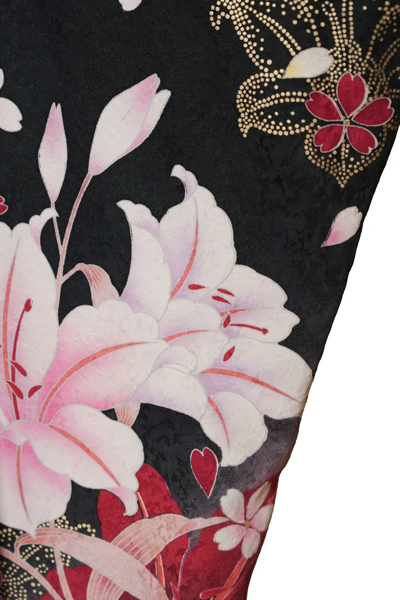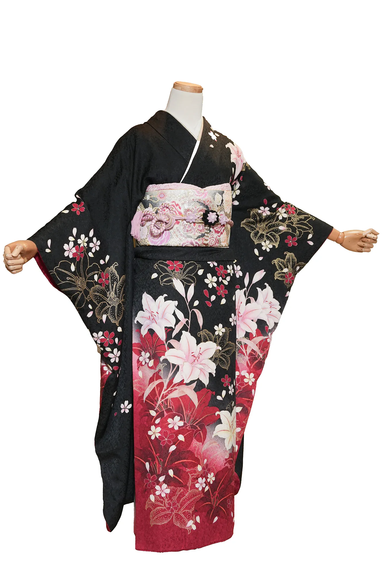 Furisode is a kimono with long, flowing sleeves, considered the most splendid outfit for young women. The soft, high-quality silk material, combined with hand-painted or hand-embroidered patterns, creates a brilliant and attractive look in every detail. Furisode is often worn during coming-of-age ceremonies or other important occasions. When combined with Fukuro obi (袋帯) tied into many elaborate and graceful bows, the kimono becomes splendid, helping the wearer shine with the elegant and graceful beauty of Japanese culture.