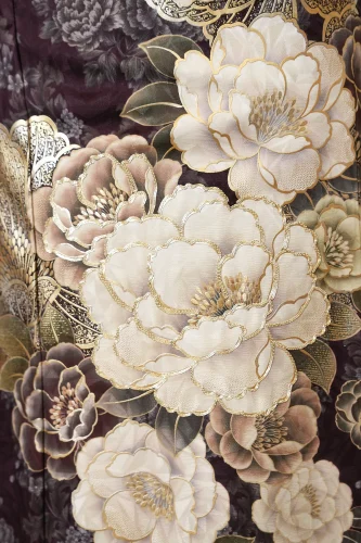 プレミアム振袖は、成人式、結婚式、祝賀会、記念撮影など、フォーマルなシーンに最適な最高級振袖です。厳選された絹を使用し、柔らかな綸子/ジャカード織りの地色に友禅染めの技法と金襴のラメをアクセントにあしらったプレミアム振袖は、洗練された華やかさと優美さを兼ね備えた職人技の逸品です。