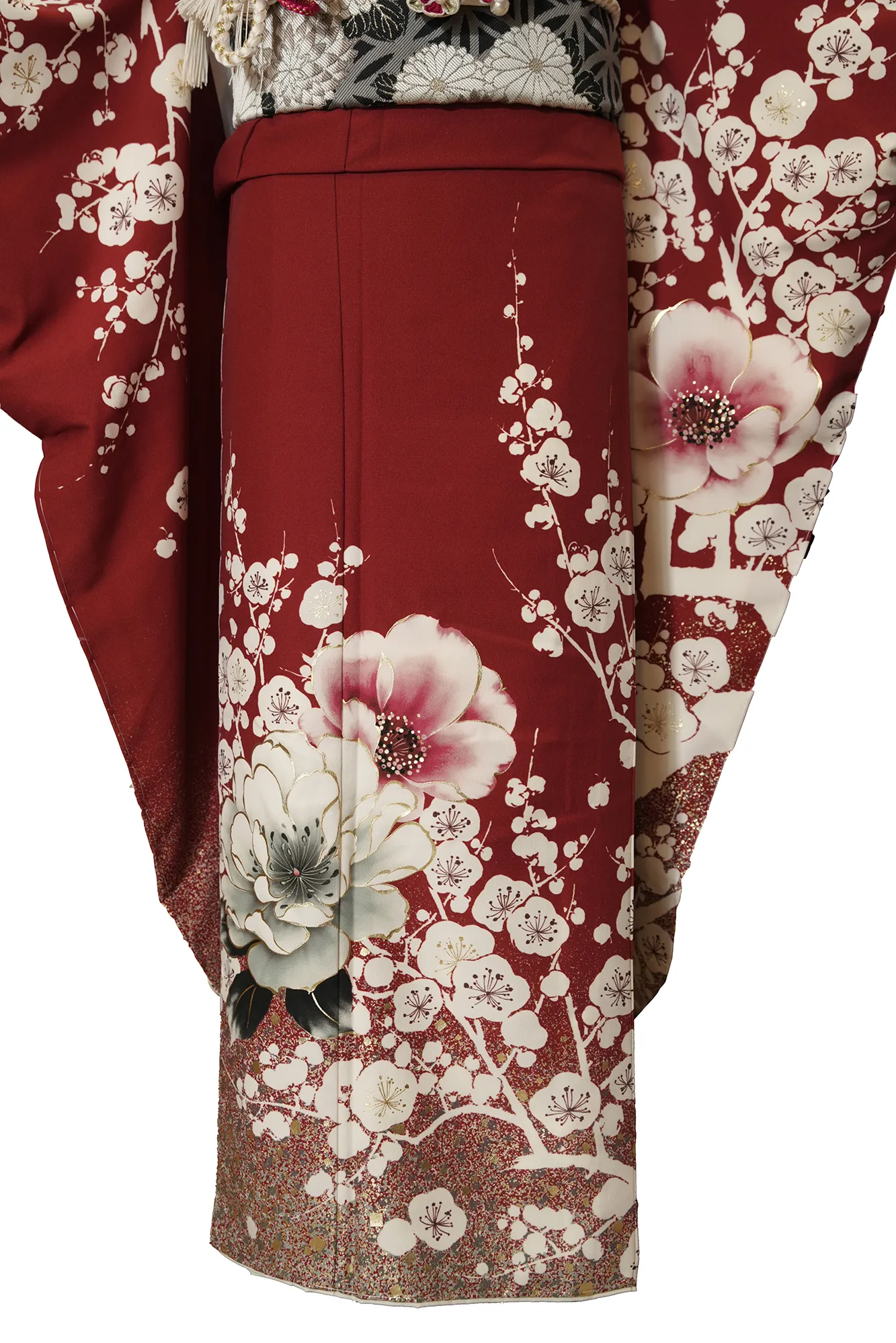 高級な袋帯を合わせ、袋詰やお太鼓などの儀式用の結び方で締め、帯揚げ、帯締め、帯枕、半襟などの小物一式、草履、クラッチバッグを合わせることで、どんなシーンでも映える華やかな装いが完成します。Kimono Kilalaでは、プレミアム振袖の着付けを承り、あらゆるサイズをご用意。着付けサービスと専門の小物相談で、高貴なスタイルと日本の文化を体現するお手伝いをいたします。