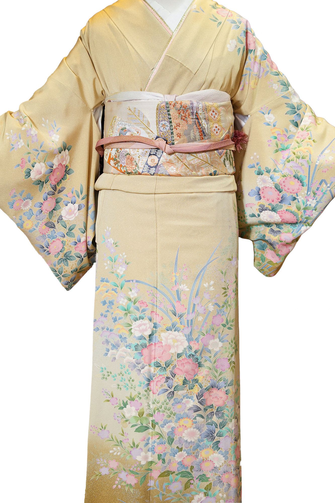 訪問着は、パーティー、結婚式、茶道、重要な会合など、フォーマルな場面で着用される着物です。上質な絹に繊細な手描きの模様が施された訪問着は、優雅さと洗練さを表現する芸術作品です。