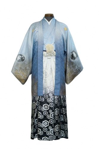 はかまは、肩に家紋が刺繍された羽織と合わせられることが多く、胸の中央にポンポンの房が付いた白い紐で羽織を締めます。着物と羽織は、日本の男性の落ち着いた態度、名誉、そして威厳を象徴しています。