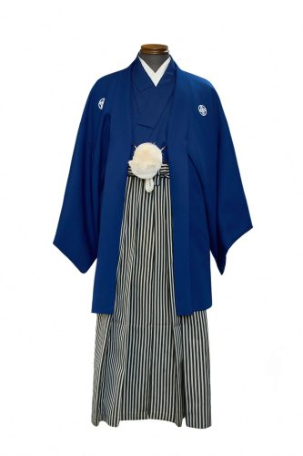 はかまは、肩に家紋が刺繍された羽織と合わせられることが多く、胸の中央にポンポンの房が付いた白い紐で羽織を締めます。着物と羽織は、日本の男性の落ち着いた態度、名誉、そして威厳を象徴しています。