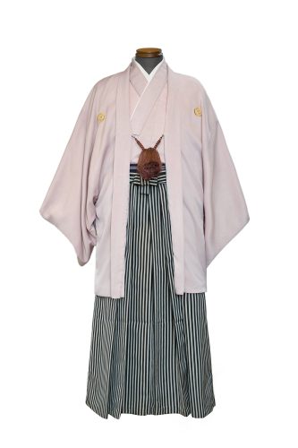 はかまは、肩に家紋が刺繍された羽織と合わせられることが多く、胸の中央にポンポンの房が付いた白い紐で羽織を締めます。着物と羽織は、日本の男性の落ち着いた態度、名誉、そして威厳を象徴しています。