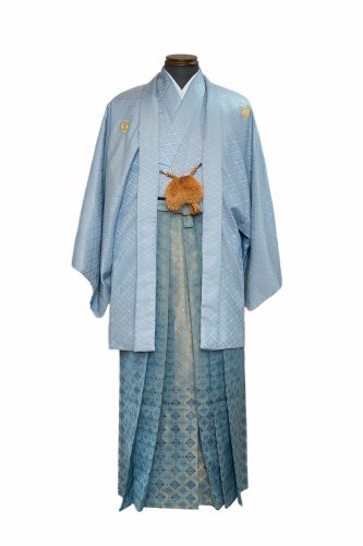 はかまは、肩に家紋が刺繍された羽織と合わせられることが多く、胸の中央にポンポンの房が付いた白い紐で羽織を締めます。着物と羽織は、日本の男性の落ち着いた態度、名誉、そして威厳を象徴しています。