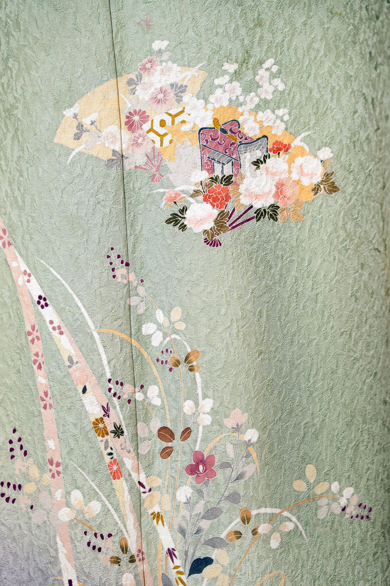 訪问着是一种用于正式场合的和服,例如宴会、婚礼、茶道或重要会议。它采用优质丝绸制成,并饰以精致的手绘图案,每一件訪问着都是一件展现优雅与高贵的艺术品。