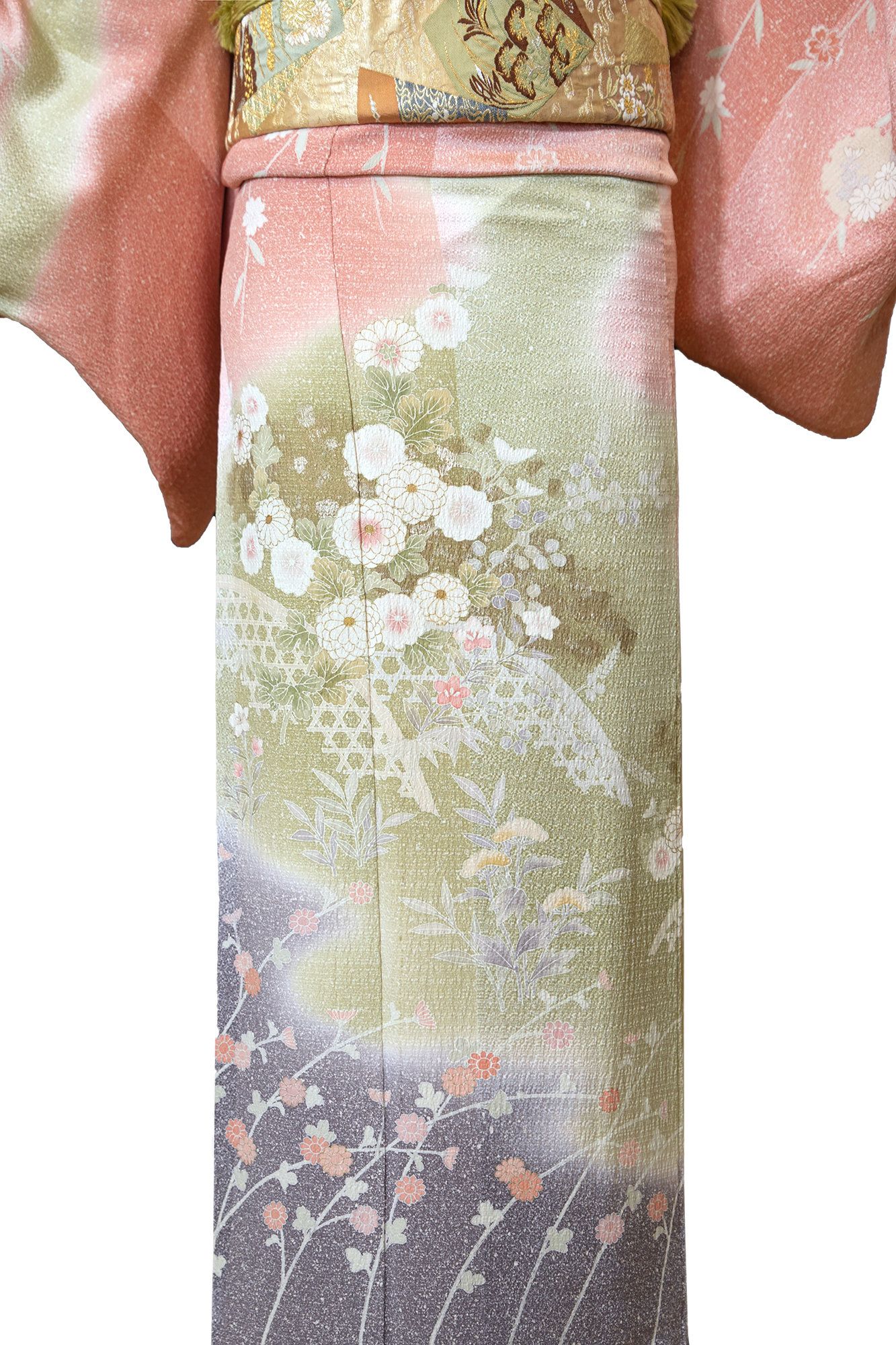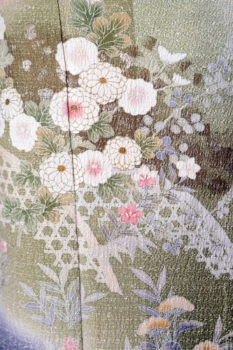 訪问着是一种用于正式场合的和服,例如宴会、婚礼、茶道或重要会议。它采用优质丝绸制成,并饰以精致的手绘图案,每一件訪问着都是一件展现优雅与高贵的艺术品。