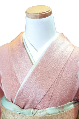 訪问着搭配袋帯(Fukuro obi),袋帯以太鼓结(Taiko style)系法系紧——一种平衡的正方形,象征着正式与优雅。穿着訪问着,尽显奢华与高贵。